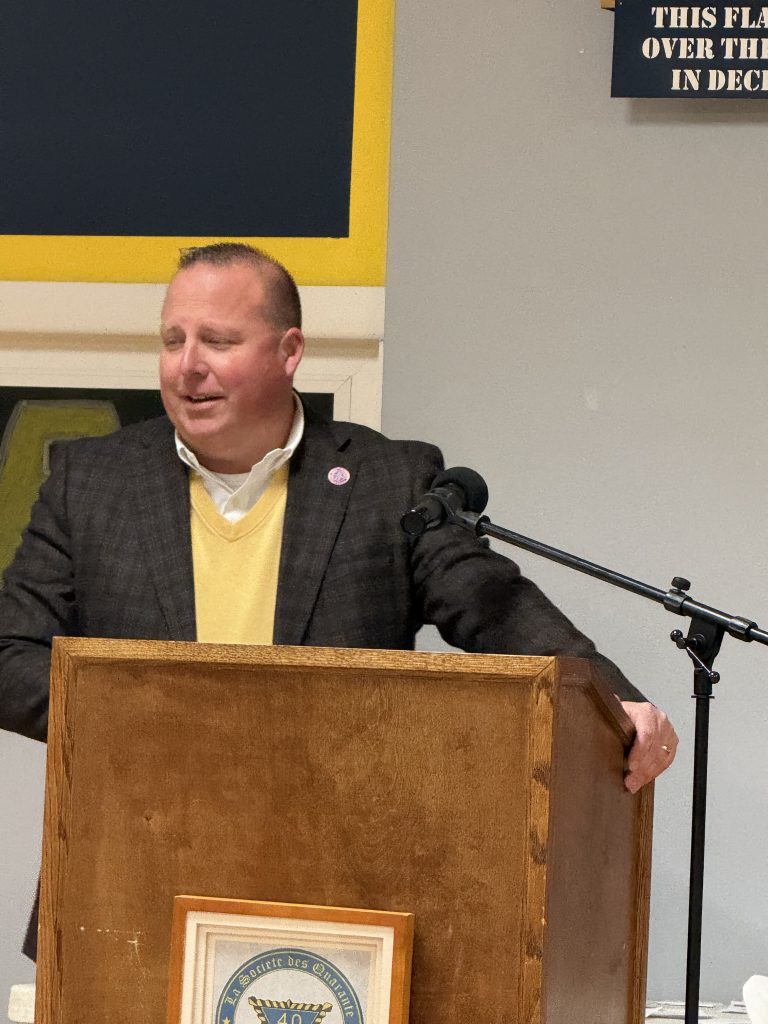 Chef de Gare Jim Schmidt opened the program with a welcome that set the tone for the evening — one of gratitude, history, and renewed purpose. The Invocation was offered by Aumonier Jon Lyons, followed by dinner and an impressive roster of distinguished speakers.