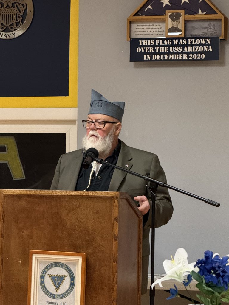 While Voiture 410 is grateful for all the work he did, Tim’s most important community job is as the de facto leader of the Kenosha Area Vietnam Veterans Honor Guard (https://sewivets.org/kavv/). If your veteran loved ones have had military funeral honers in Kenosha County, there is a good chance Tim was behind the scenes helping coordinate it.