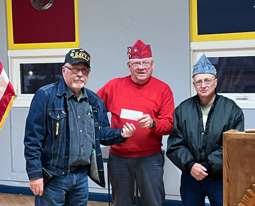 On October 20, Rich Bowker and Tim Green presented a check to Forty & Eight, Voiture 410 Chef de Gare Jim Schmidt for their Nurses Training Fund. The group has been helping Nurses get through training since the 1950’s. The Voiture has recently restarted the program after a ~15 year hiatus. our donation is an important part of that effort